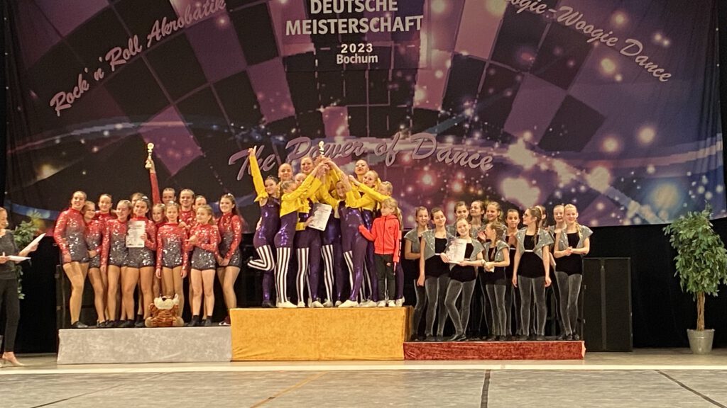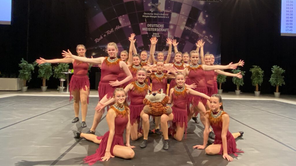 So ging es mit 2 neuen Formationen, die Young Tigers und die Wild Tigers, zuvor zu Ausscheidungsturnieren. Damit man auch ganz sicher bei der Deutschen Meisterschaft dabei ist, wurde im Spätsommer auch noch ein Turnier in Flensburg bestritten, wo man dem Zug anreiste. Aber die Strapazen haben sich gelohnt und so ging es Mitte November für alle nach Bochum zu den deutschen Meisterschaften. Alleine das ist schon ein riesiger Erfolg. Wer die Mädels jetzt mal live sehen möchte, der darf gerne zu einem Rock´n Roll Turnier der Frankenbacher kommen. Geplant ist der 10.03.2024. Der Bilderbogen wird diese Veranstaltung frühzeitig in der Vorschau präsentieren. Lest dazu nachfolgend den Gastbeitrag von Diana Haas und schaut euch den Siegertanz ruhig mal an.